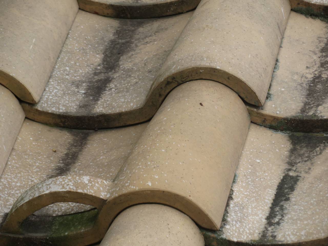 - モニエル瓦:セメントと砂を主原料にした瓦で塗装が必要、粘土瓦との見分け方は先端の形状(上記画像)