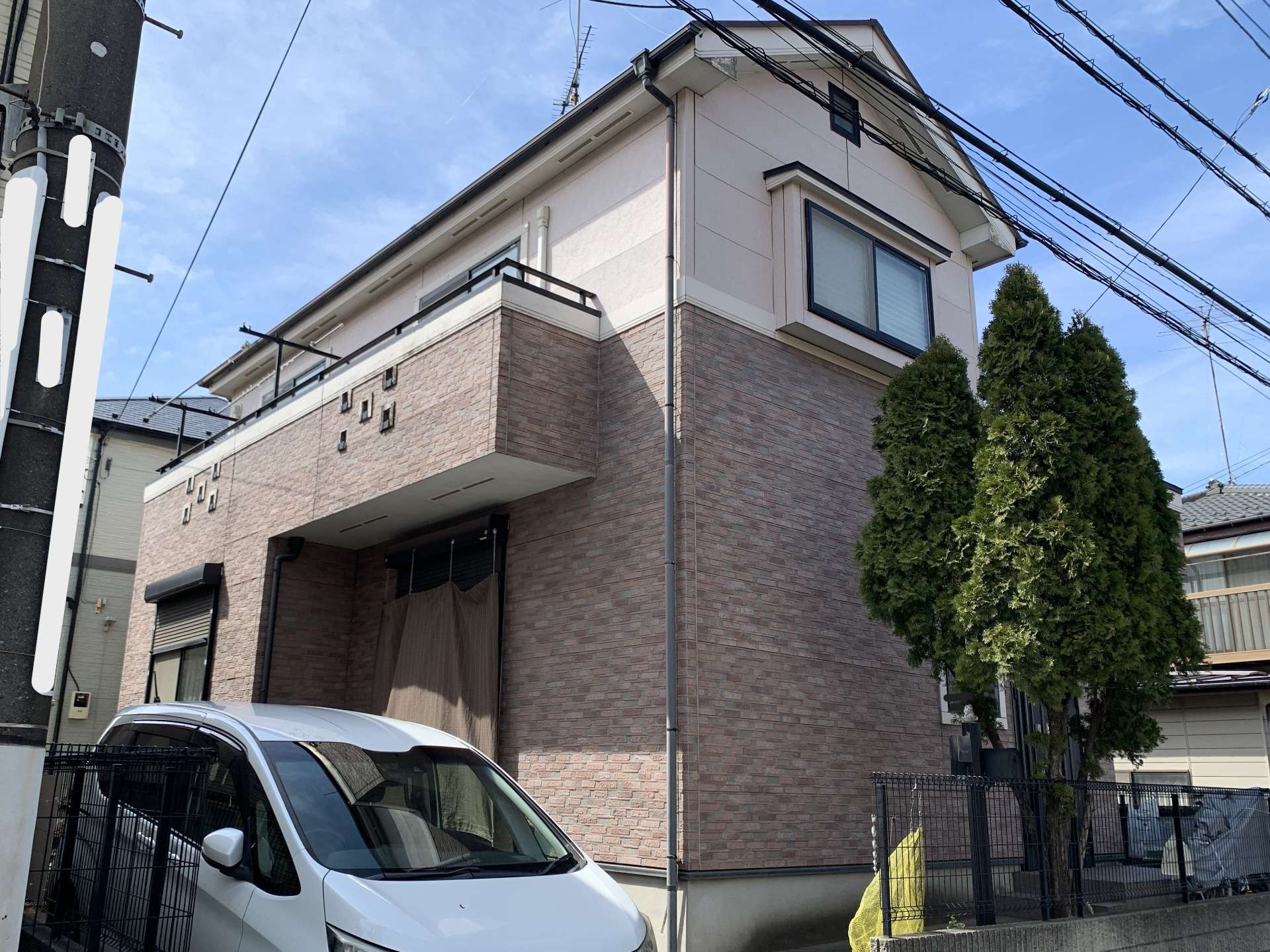H様邸では、塗装前に現場監督が細かく事前検査を行い、外壁が水を吸って劣化した箇所などを丁寧にチェックしました。