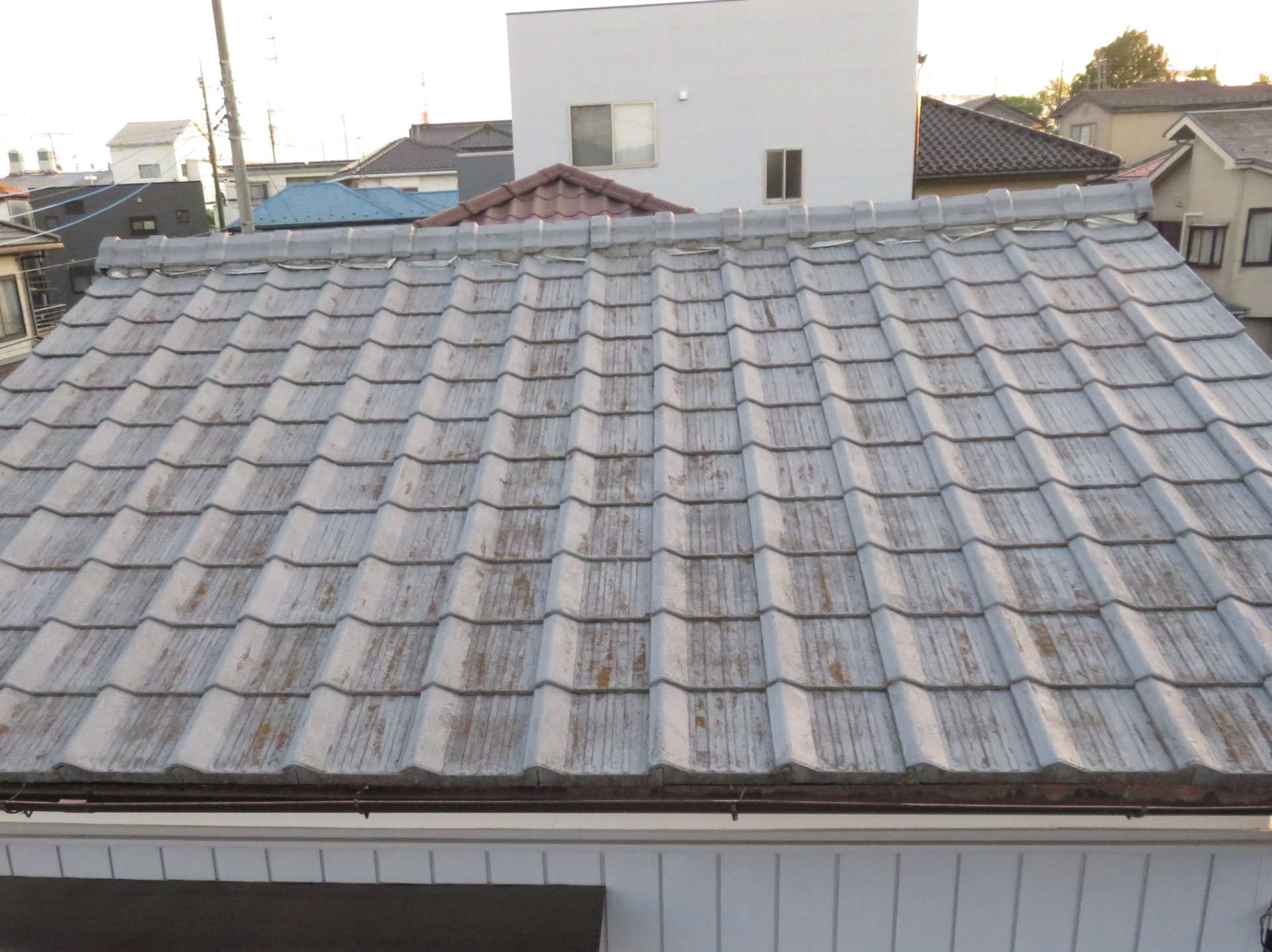 屋根の下の外壁は味わいのある漆喰仕上げ、屋根には重厚感のあるモニエル瓦。年月とともに色あせやひび割れが目立ちはじめ、「そろそろ手を入れないとね」とご家族の間で話題に上るようになったといいます。